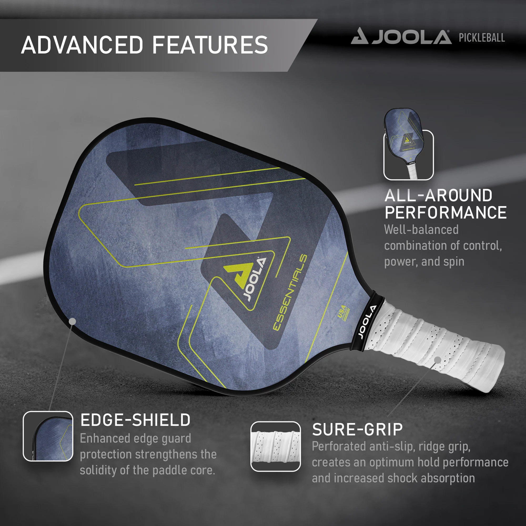 - JOOLA Essentials Performance Pickleball Paddle with Reinforced Fiberglass Surface and Honeycomb Polypropylene Core