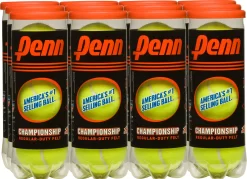 The Penn® Championship Regular Duty Tennis Balls are the official ball of USTA® League Tennis. For use on soft or clay courts, the regular duty balls are built with natural rubber for reliable feel and reduced shock. The interlocked wool fiber composition increases durability for longer wear, while deep-elastic seams offer reduced cracking. This 12 can multi-pack provides the gear you need to be a champion from one season to the next.
